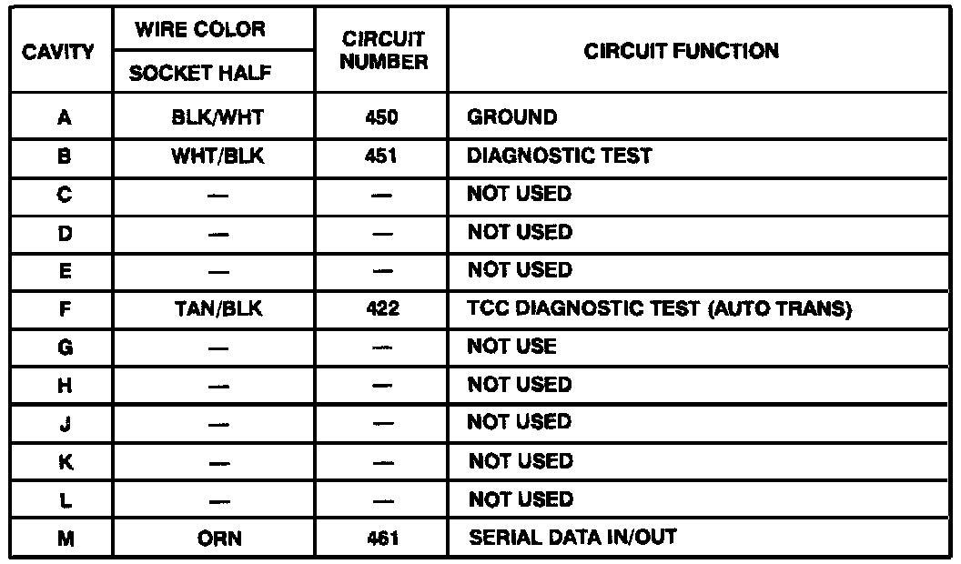 Harness Connector Faces: Data Link Connector (Description):