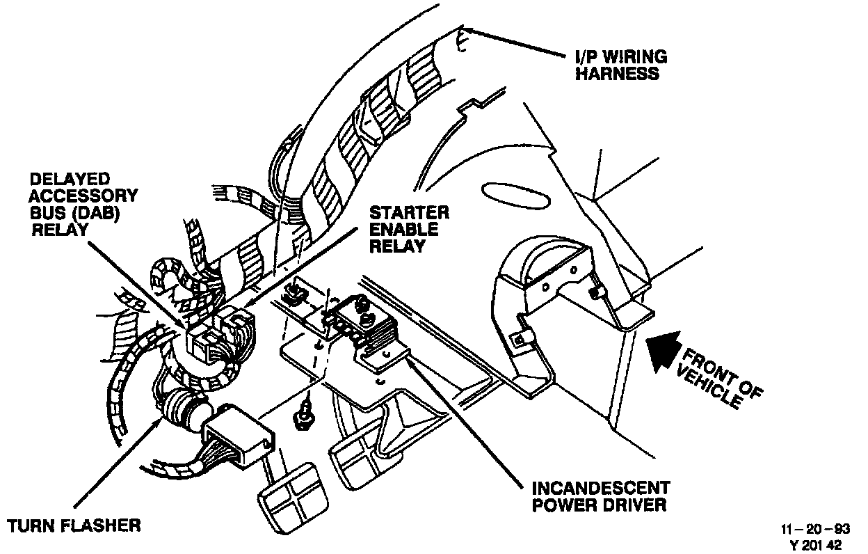 Behind LH I/P Above Brake Pedal: