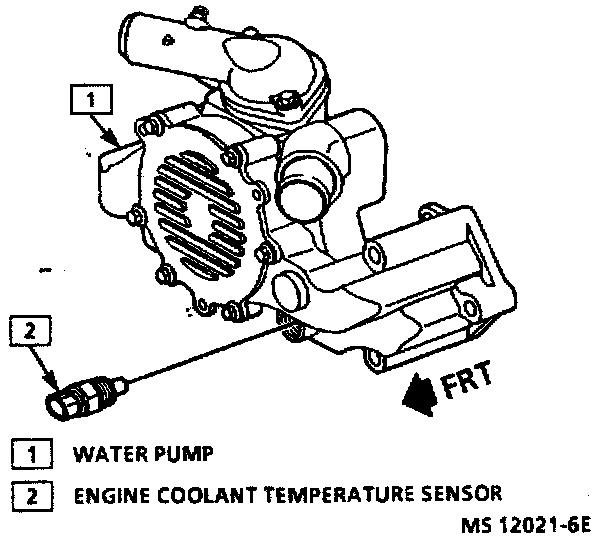 The Engine Coolant Temperature Sensor is installed in the front of the water pump.