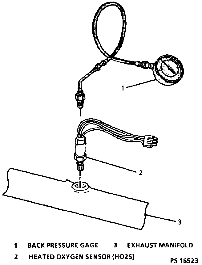 2. Install exhaust backpressure tester (J 35314-A) in place of O2S (refer to figure).