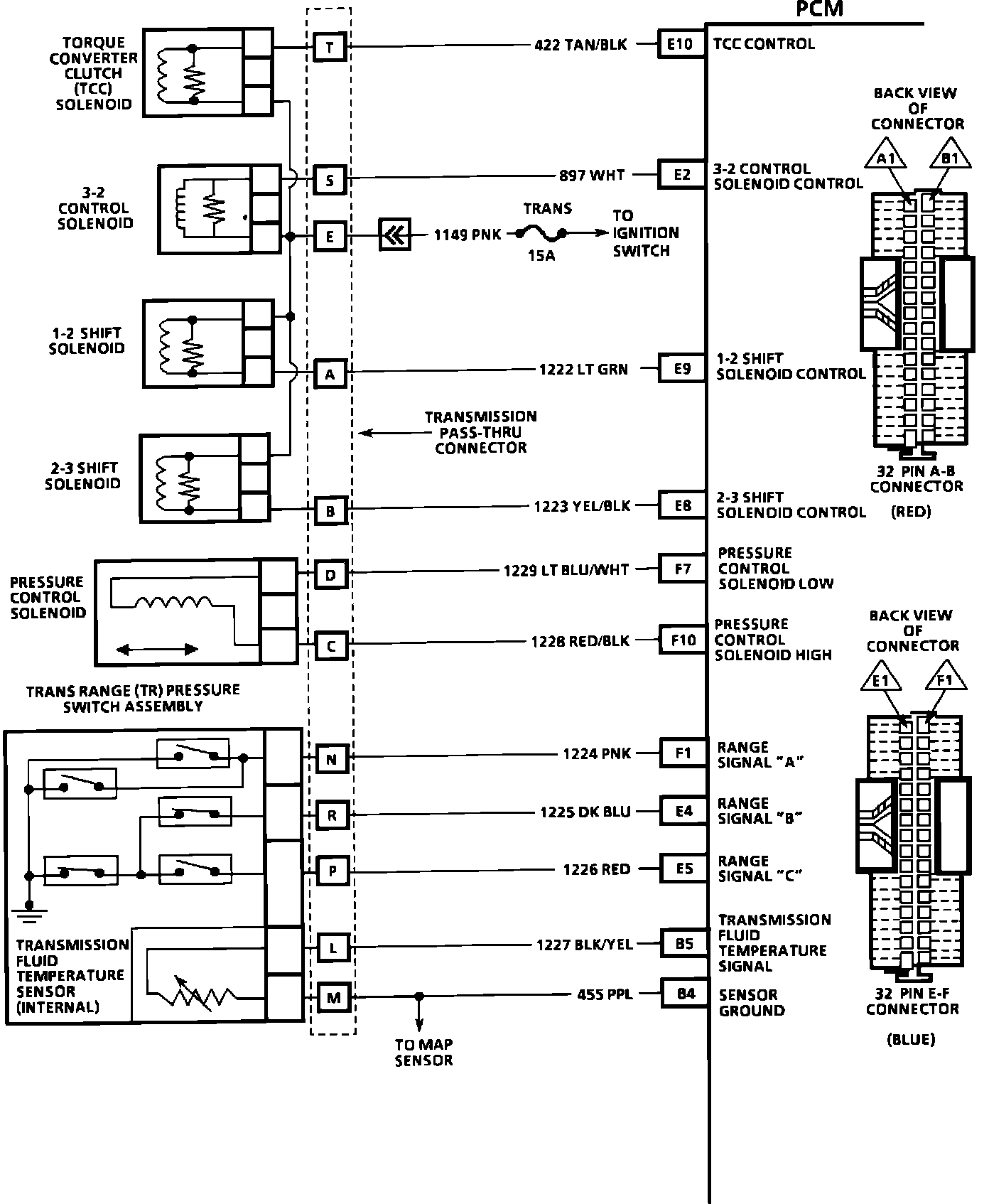 E8 = 2-3 SHIFT SOLENOID CONTROL.
