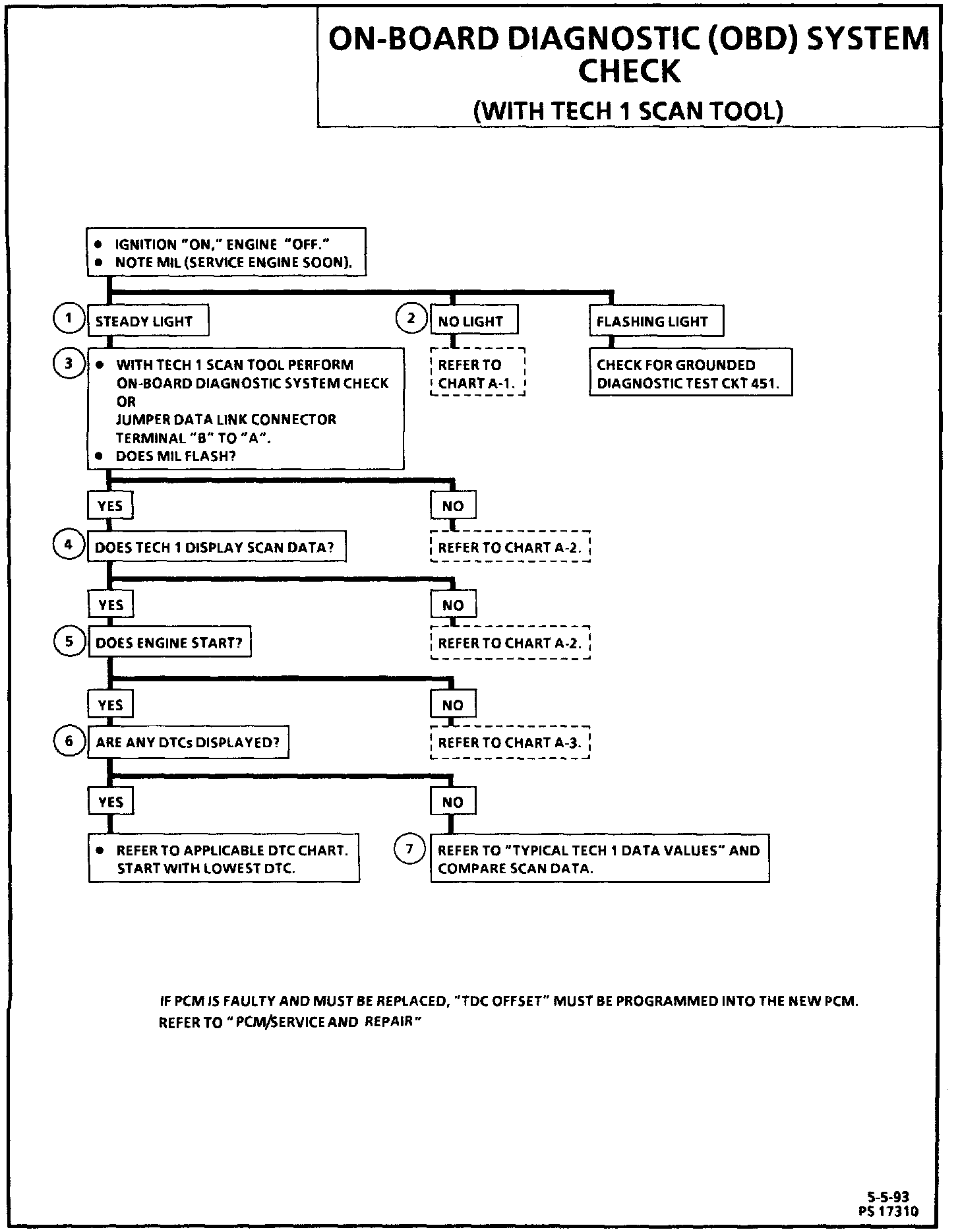 The "On-Board Diagnostic (OBD) System Check" is an organized approach to identifying a problem created by a control module system malfunction. It must be the starting point for any driveability complaint diagnosis, this will direct the service technician to the next logical step in diagnosing the complaint. Understanding the chart and using it properly will reduce diagnostic time and prevent the unnecessary replacement of good parts.