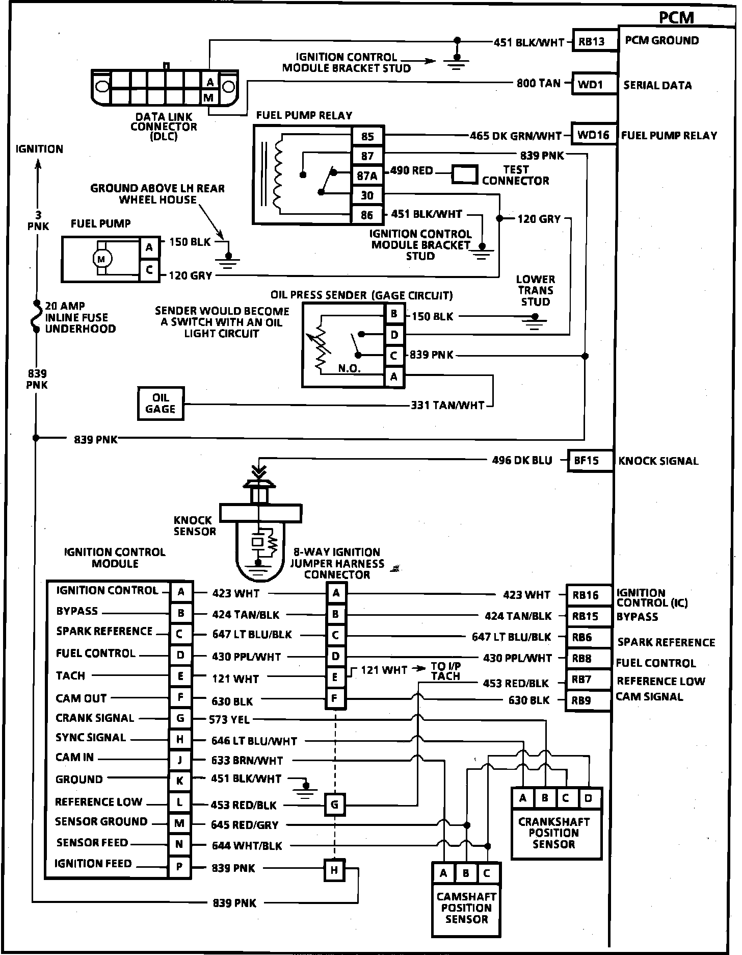 NOTE: The first character of each PCM pin number in the following diagrams indicates the color of the connector (B - BLACK; G- GREEN).Engine Management System Diagram (1 Of 4):