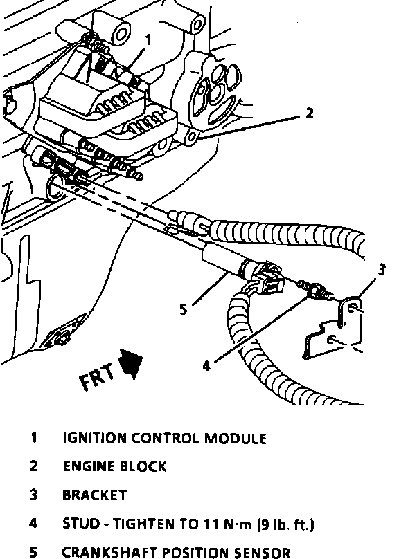 The crankshaft position sensor is mounted in the engine block, rear of engine, near coil pack.