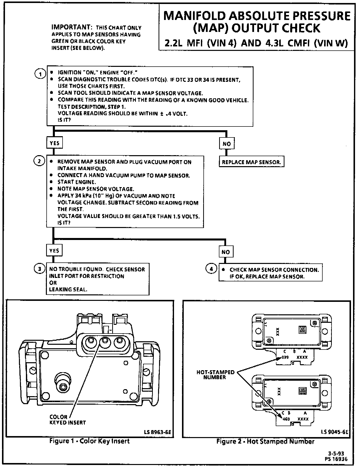 1. When comparing scan readings to a known good vehicle, it is important to compare vehicles that use a MAP sensor having the same color insert and the same "Hot Stamped" number. Refer to Figures 1 and 2 on facing page.