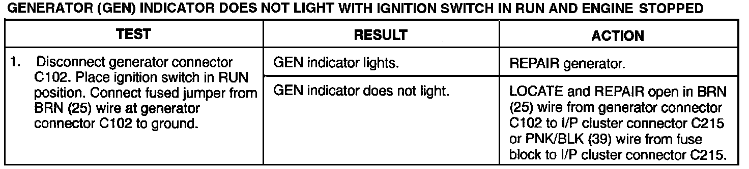 Generator (Gen) Indicator Does Not Light With Ignition Switch In Run: