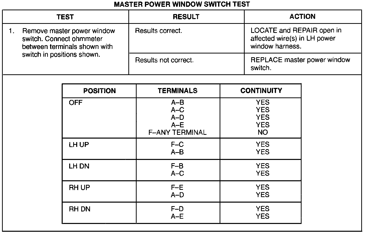 Master Power Window Switch Test: