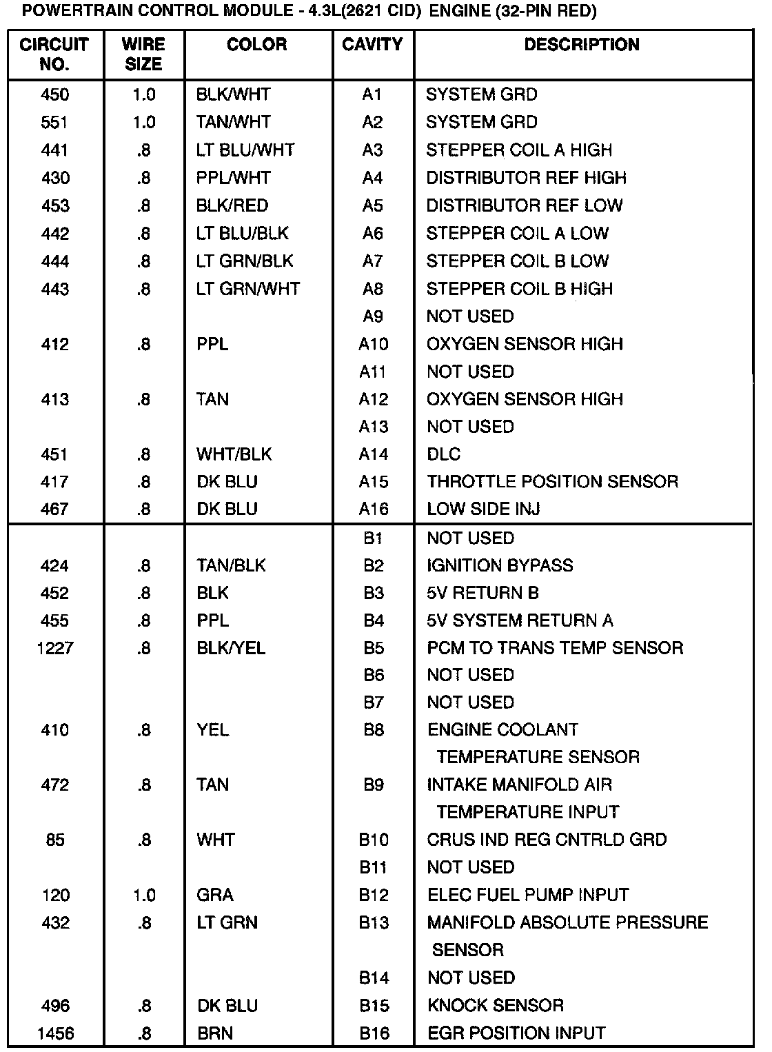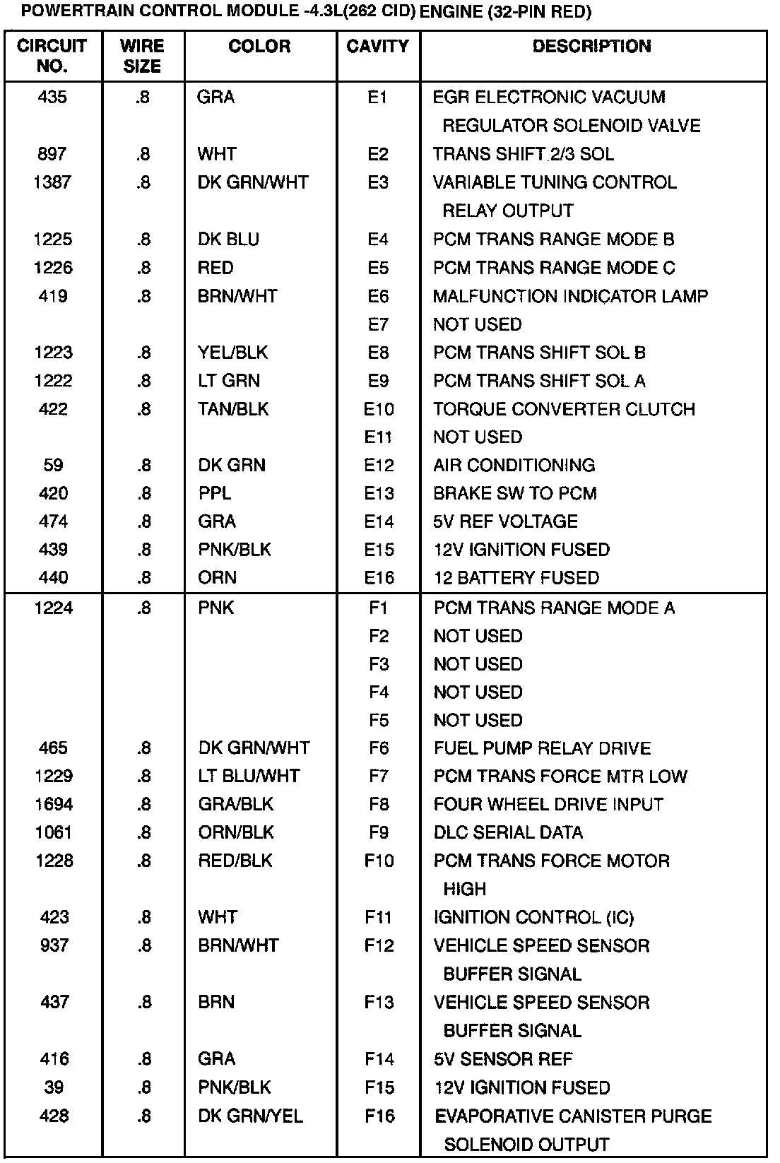 S10/T10 P/U 2WD V6-262 4.3L VIN W CPI