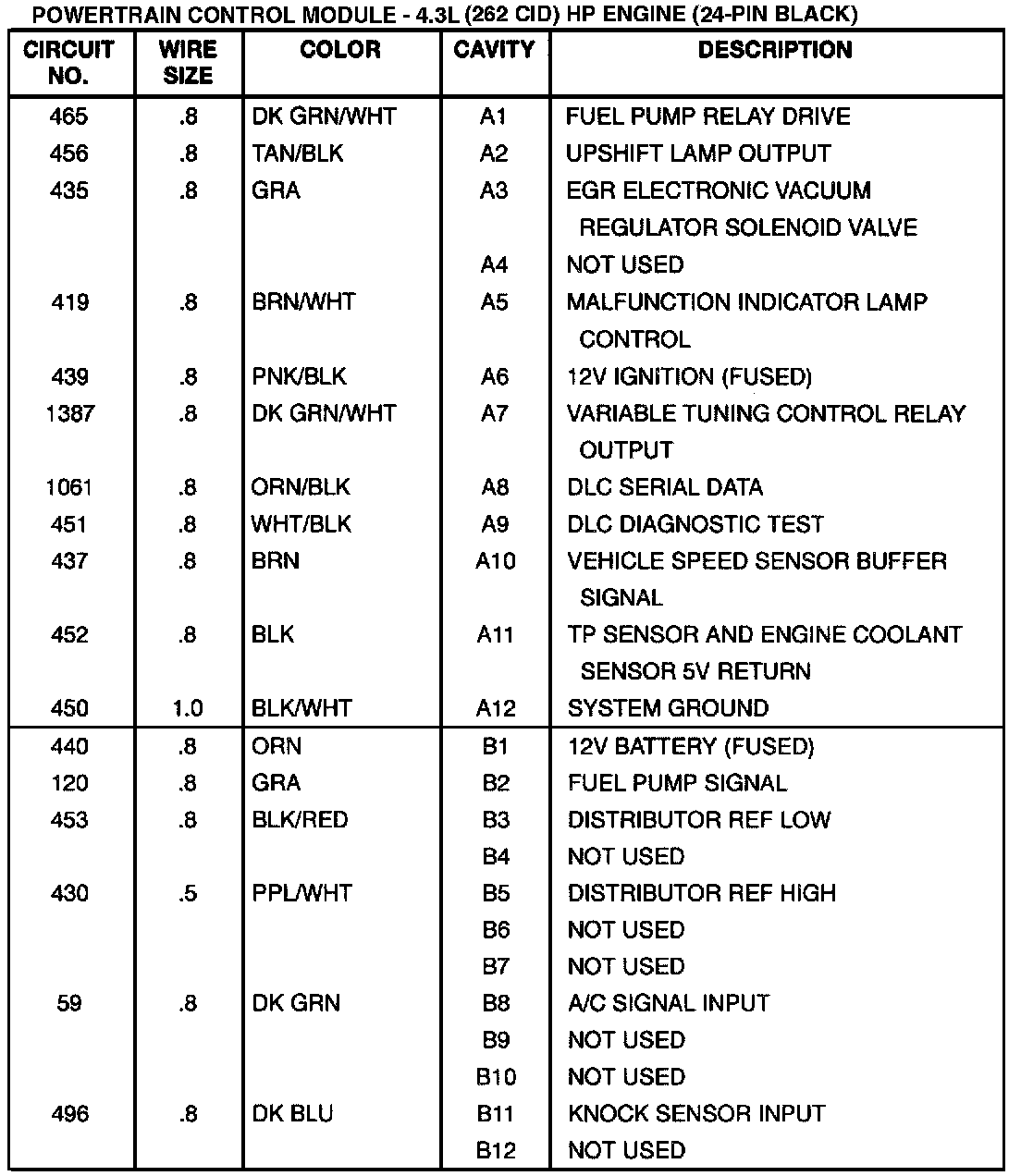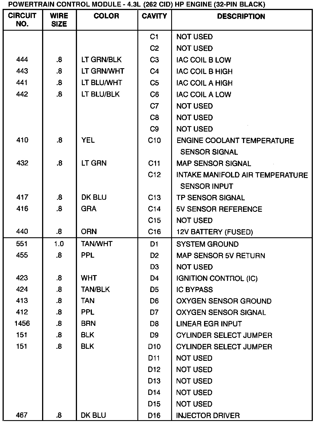 S10/T10 P/U 2WD V6-262 4.3L VIN W CPI