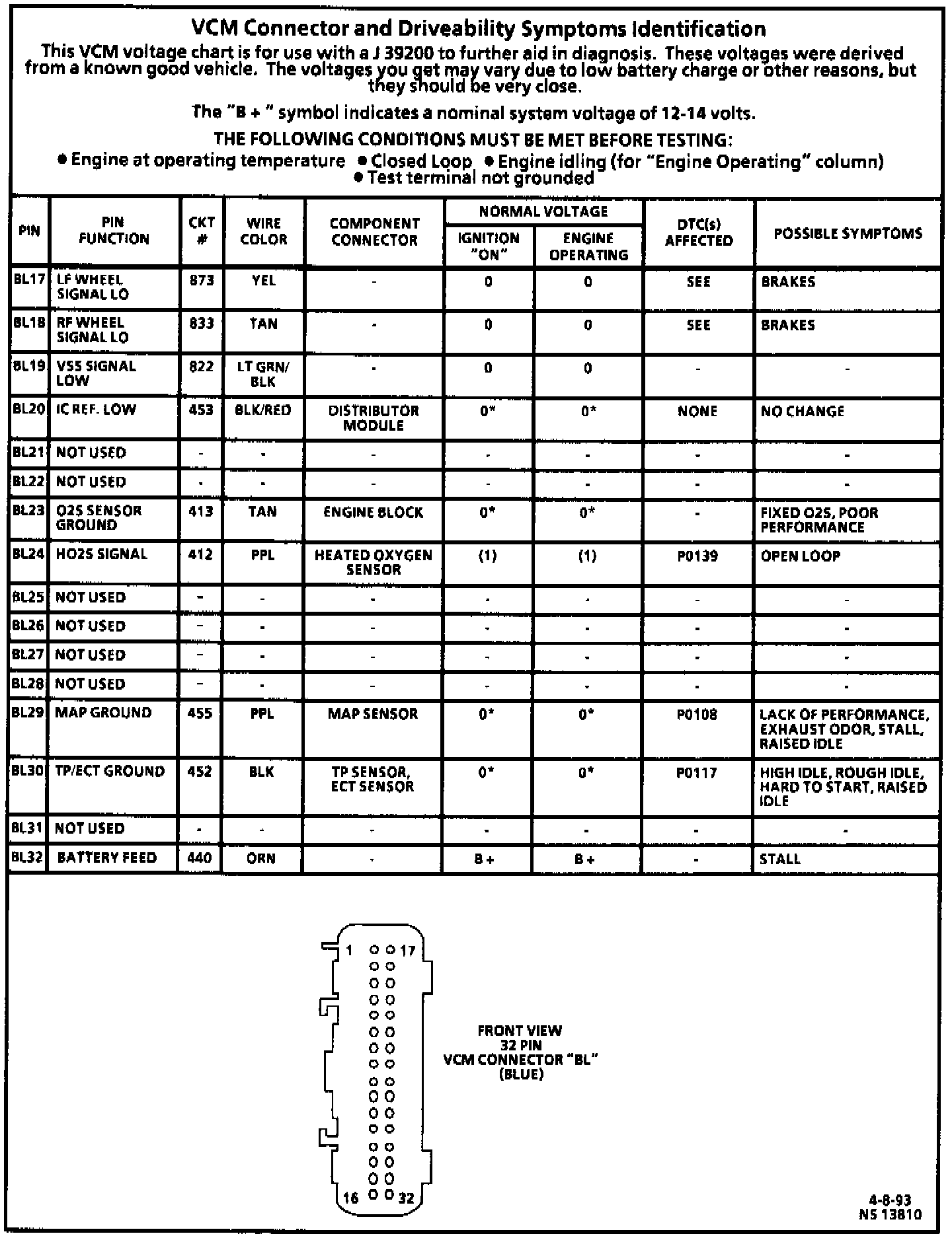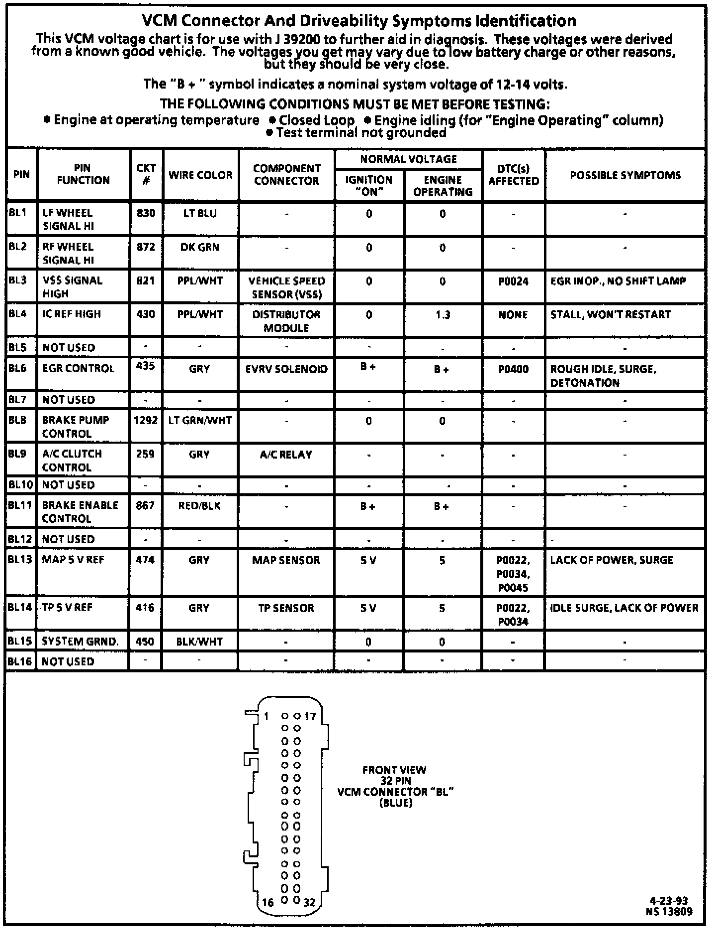 VCM Pinout/Terminal ID Charts