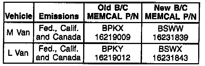 2. Vehicles identified as having Prom ID's with the old calibration should have the new MEMCAL listed below installed.