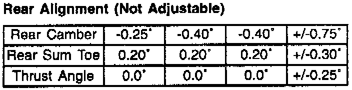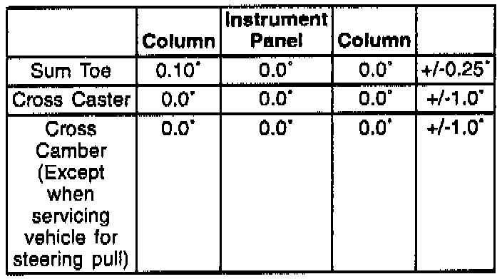 This bulletin updates Section 3A-4 of the appropriate Service Manual. The following are the new alignment specifications and tolerances: