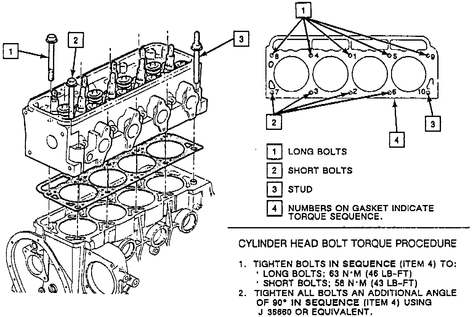 1. Torque long bolts to 63 Nm (46 lbs. ft.)