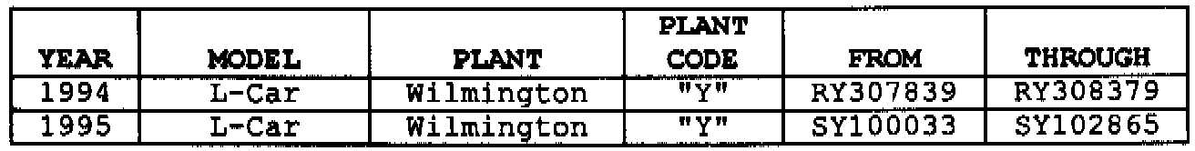 Involved are certain 1994-95 Chevrolet Beretta model vehicles built within the following VIN breakpoints: