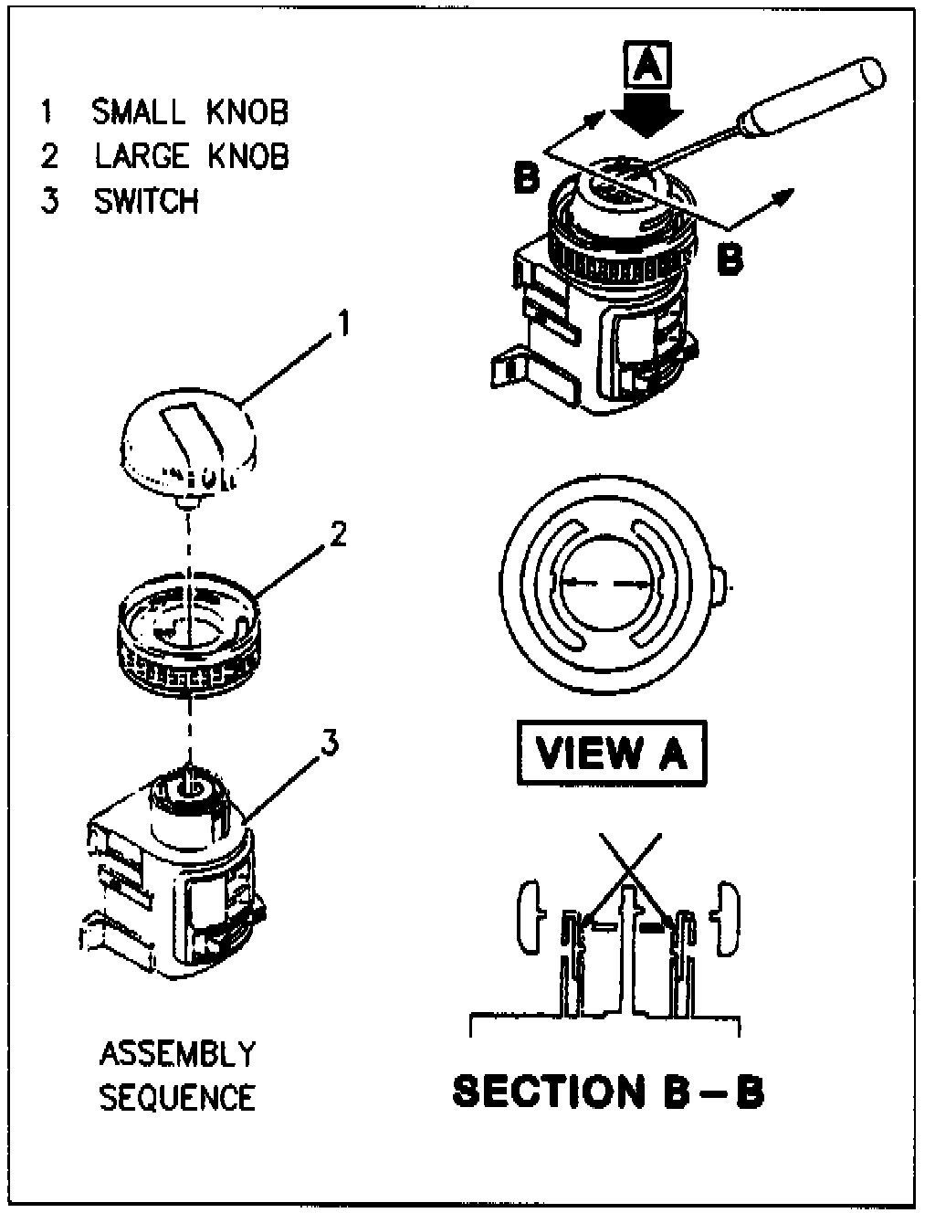 4. Insert a suitable flat blade screwdriver into slots adjacent to center of inner knob and disengage knob from switch.