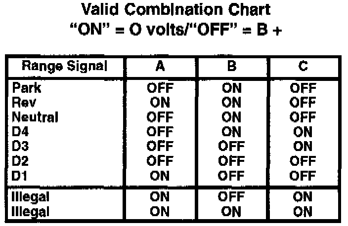 Transmission Range Switch Combination Chart: