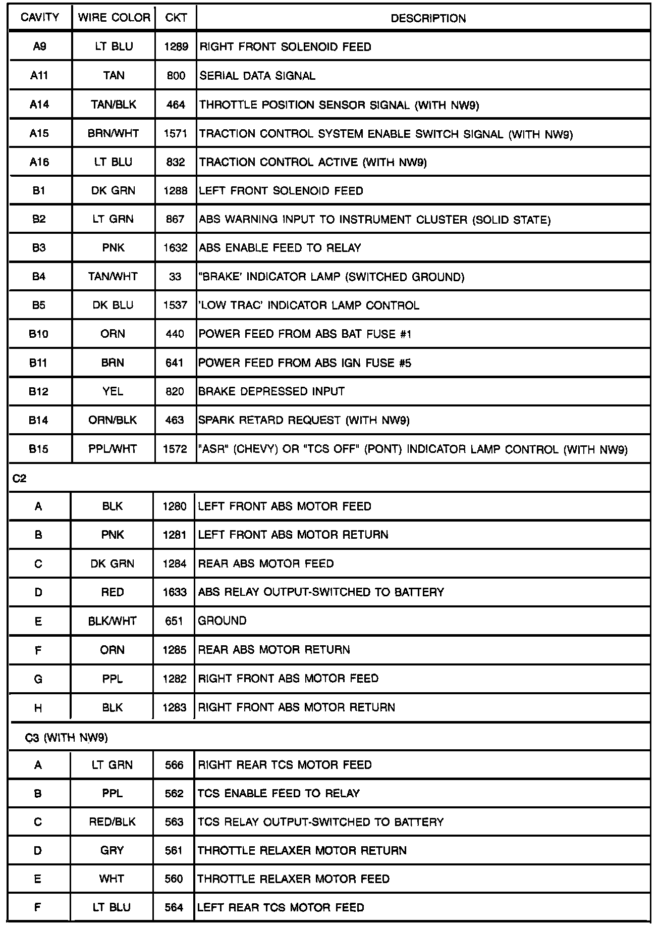Wire Color And Description: