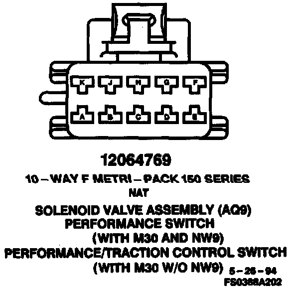 Harness Connector Face: Solenoid Valve Assembly (AQ9) Performance Switch (With M30 And NW9):