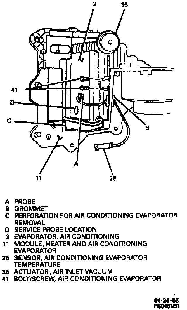 4. Bolts/screws (41) to air conditioning evaporator (3).