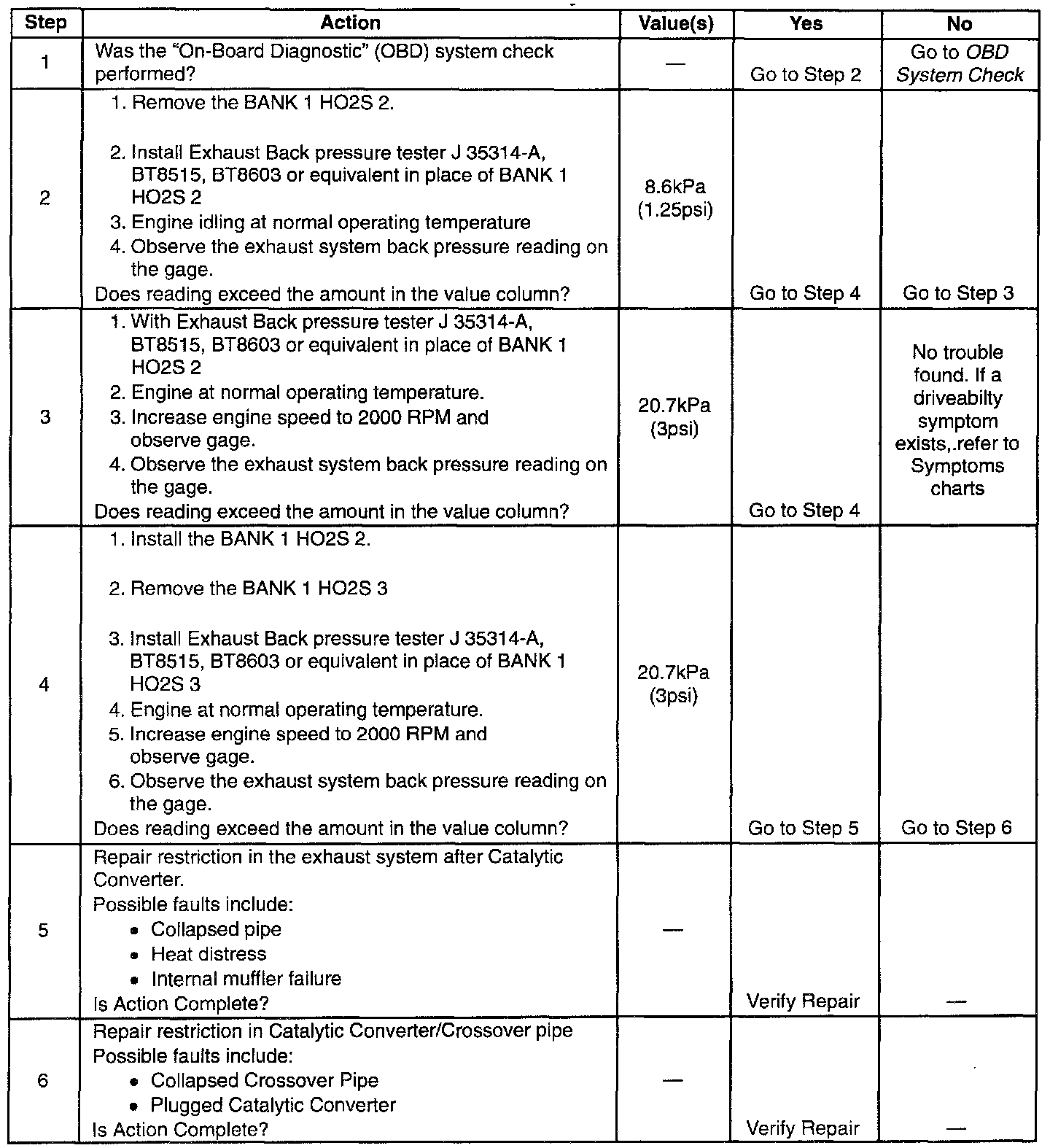 Restricted Exhaust System Check: