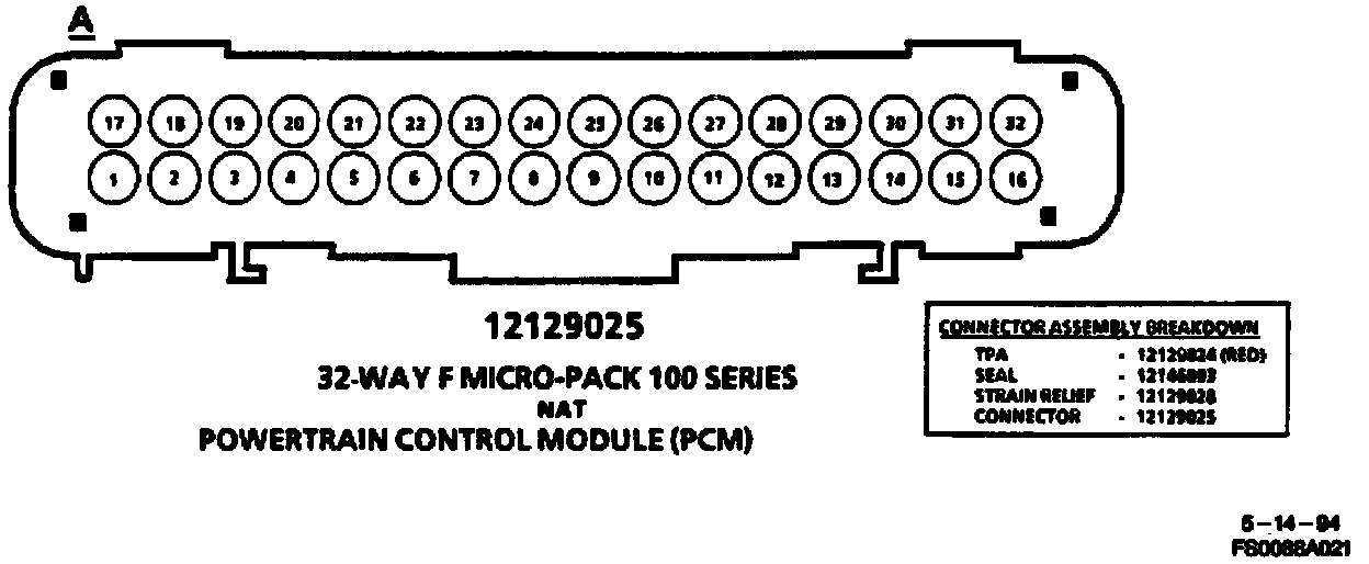 Harness Connector Face: Powertrain Control Module (PCM):