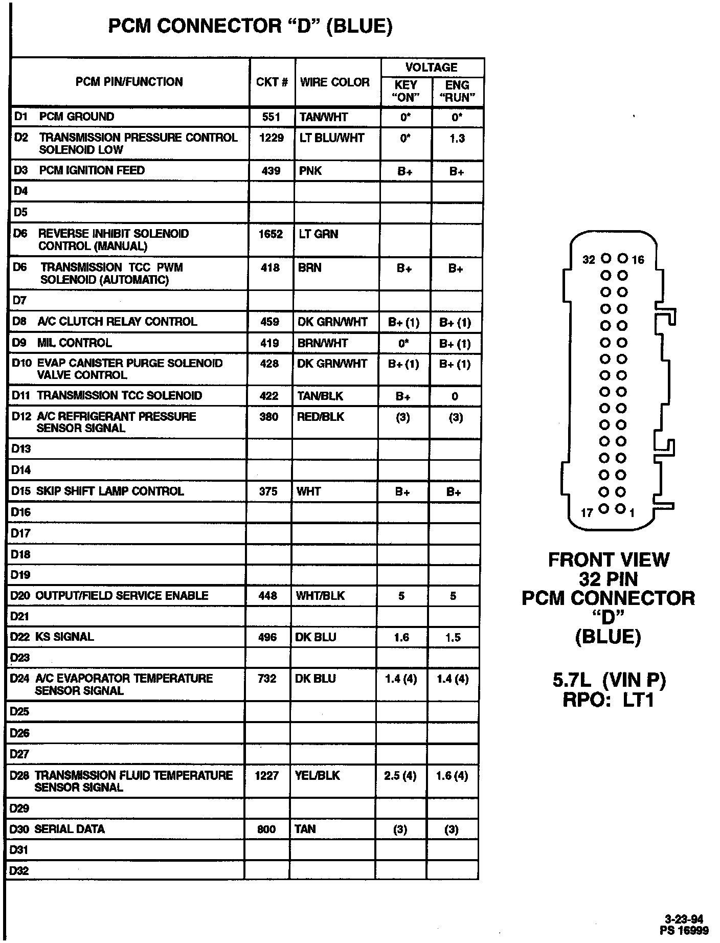 This information applies to the PCM connector charts in the next four images. These charts may be used with the J 39700-A breakout box in conjunction with J 39700-110 and J 39700-140 cables and high impedance digital multimeter J 39200 to obtain voltage present for each circuit listed. Install the breakout box between the PCM connectors and the PCM. The breakout box PIN numbers correspond with the PCM connector PIN numbers. Voltage may vary slightly, but should be very close. Certain exceptions are called out in the chart legend below.