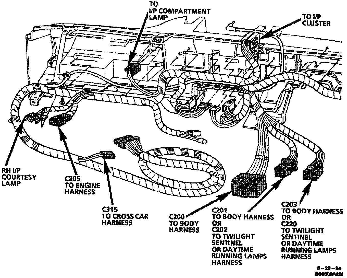 Center Of Instrument Panel Wiring: