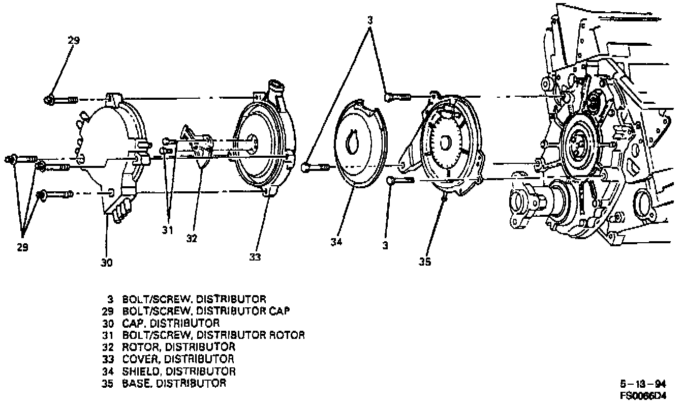 - Pull distributor assembly forward until coupling disengages from end of camshaft assembly.
