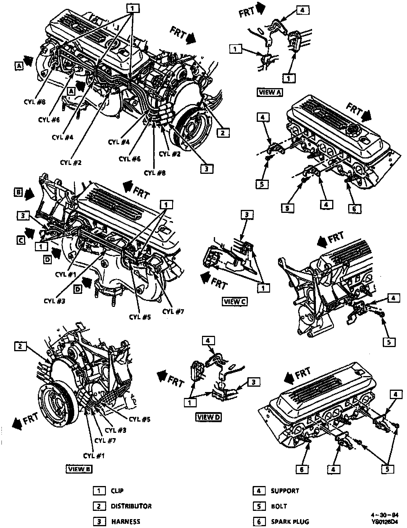 1. Note locations of spark plug wire, clips, spark plug and distributor or coil pack, for correct routing during installation.