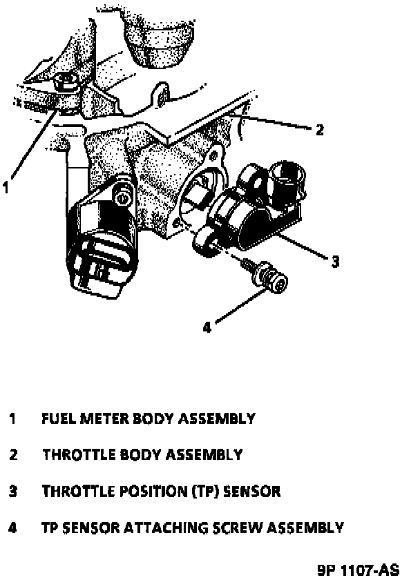 The Throttle Position (TP) sensor is an electrical component, and should not be immersed in any type of liquid solvent or cleaner, as damage may result.