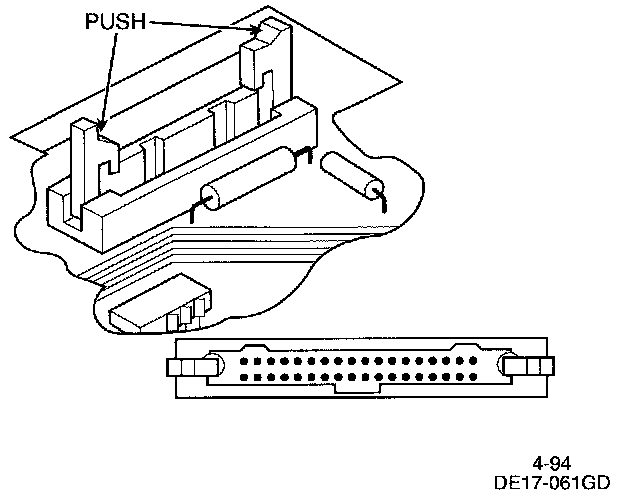 NOTE: Press only on the ends of the PROM (MEM-CAL). Small notches in the PROM (MEMCAL) must be aligned with the small notches in the PROM (MEM-CAL) socket. Gently press down on the ends of the PROM (MEM-CAL) until the clips are against the side of the PROM (MEM-CAL). Press inward on the clips until they snap into place. Listen for the click.