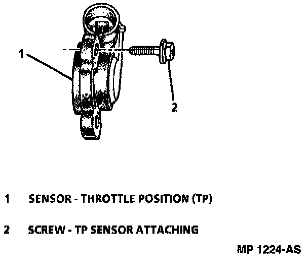 1. With the throttle valve in the normally closed idle position, install throttle position sensor on throttle body assembly, making sure TP sensor lever lines up with the TP sensor drive lever on the throttle shaft.