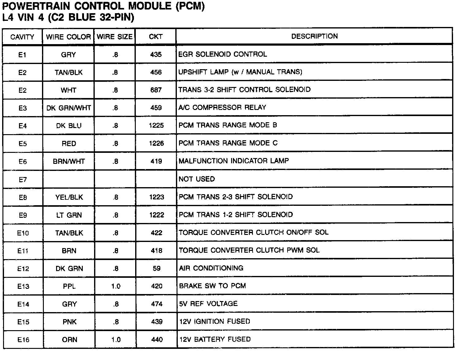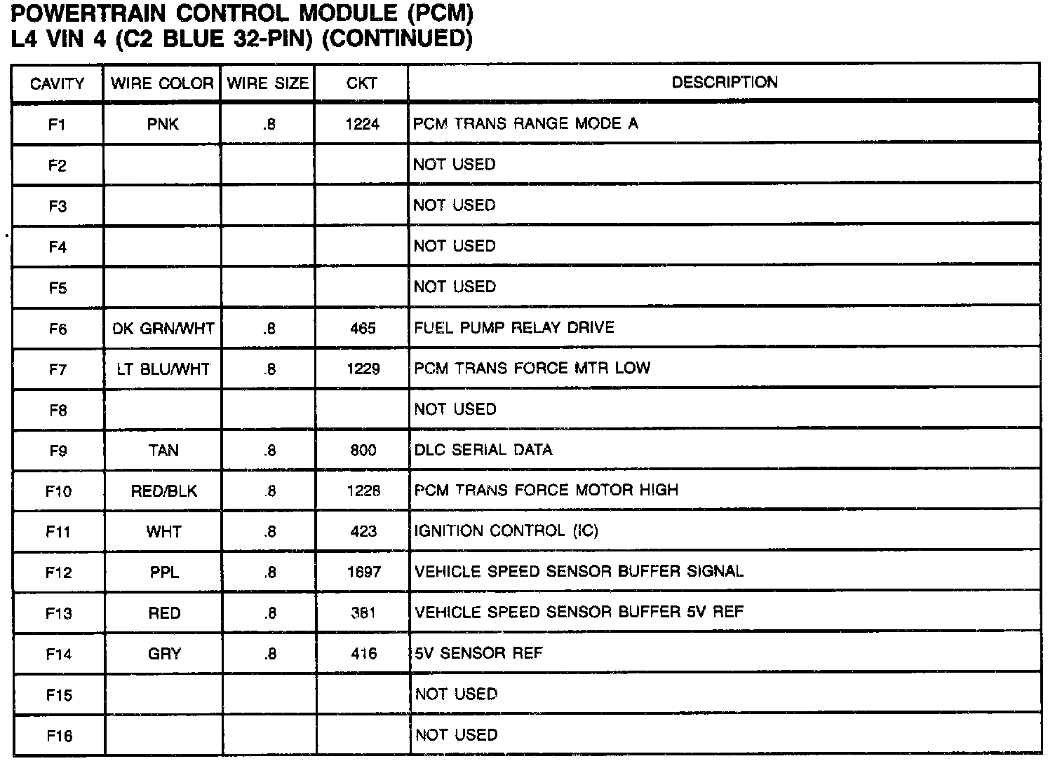 S10/T10 P/U 2WD L4-2.2L VIN 4
