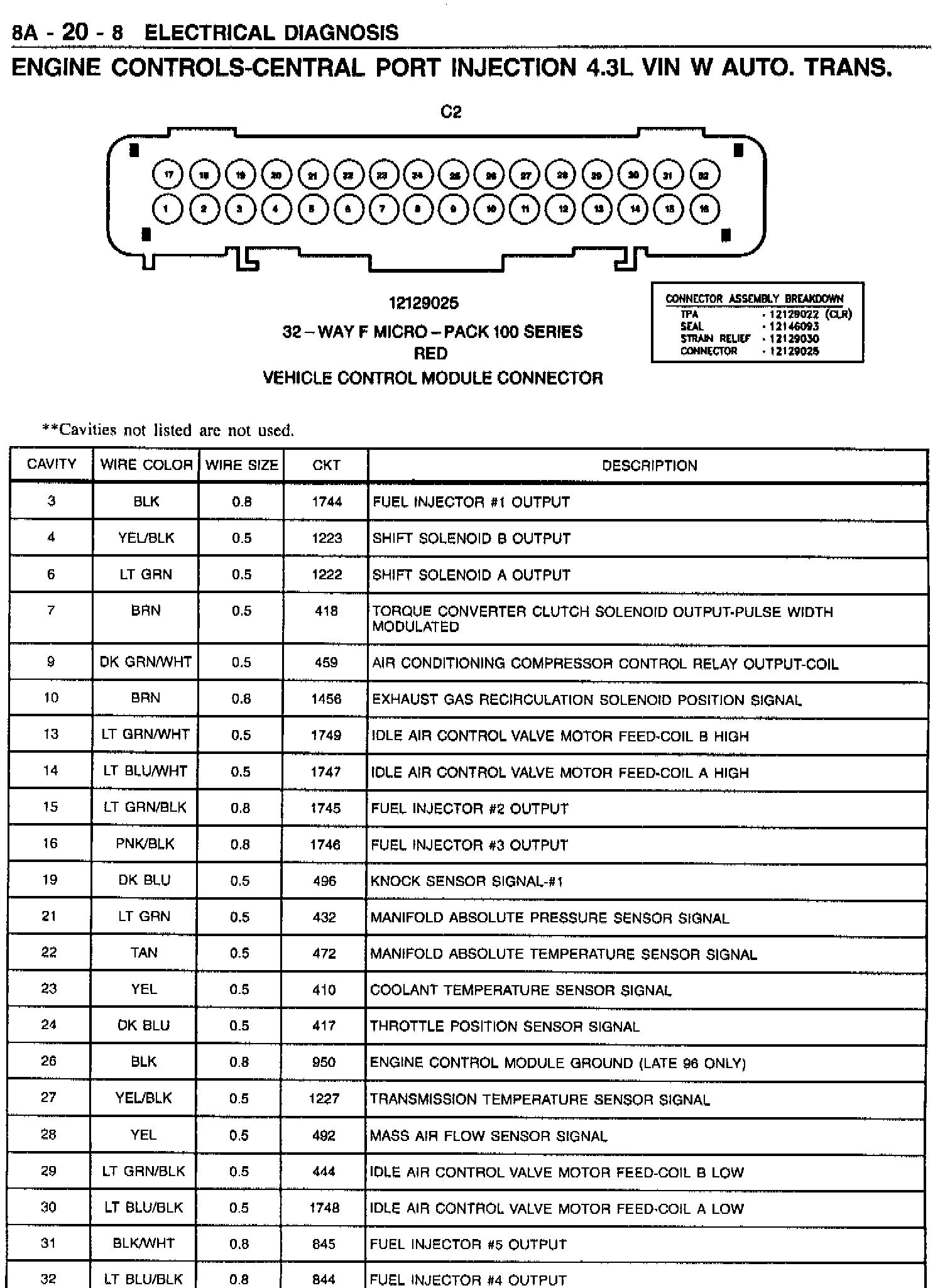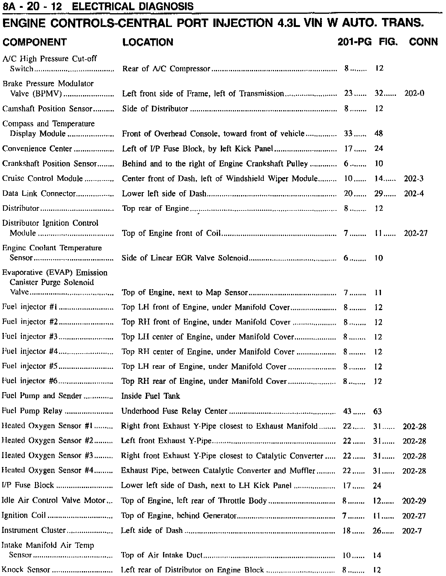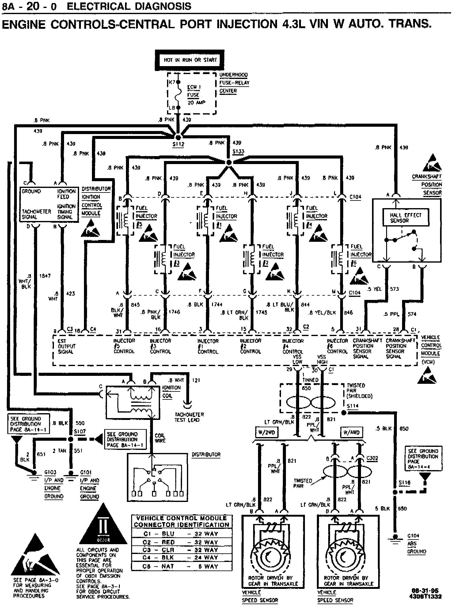 This bulletin is being issued to include Section 8A-20 (Central Port Injection 4.3L VIN W w/Automatic Transmission) which was omitted from the 1996 M/L Service Manual.