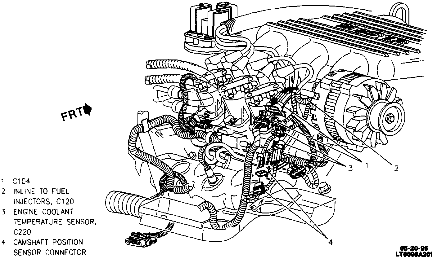 Coolant Temperature Sensor/Switch (For Computer): Locations