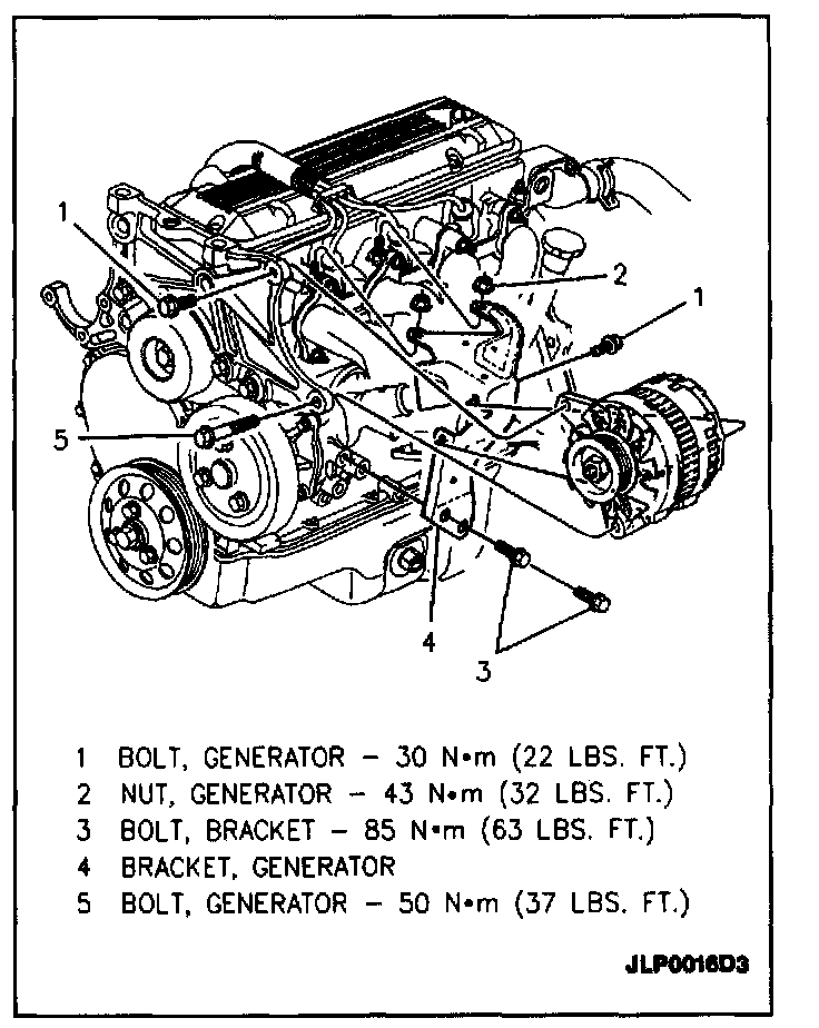 5. Upper and lower generator mounting bolts.