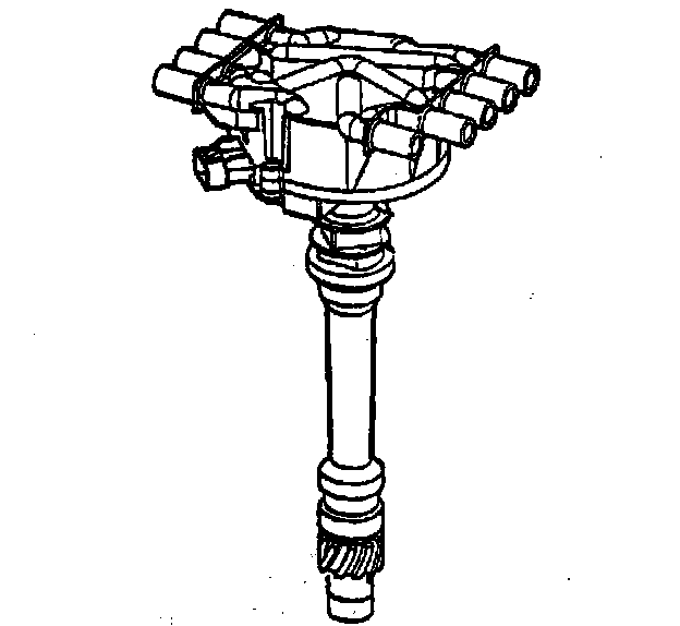 The distributor connects the ignition coil and spark plugs through secondary wires. The rotor directs the spark to the appropriate cylinder. The distributor has a hall effect switch that connects to the VCM through the primary engine harness and provides cylinder identification information.