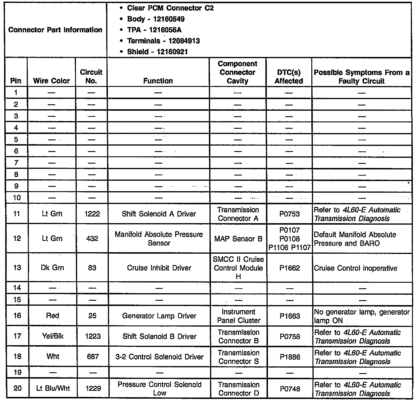 Pins 1-20: