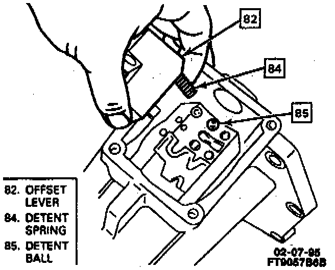 - Press downward on offset lever to compress detent spring and push lever and housing into position.