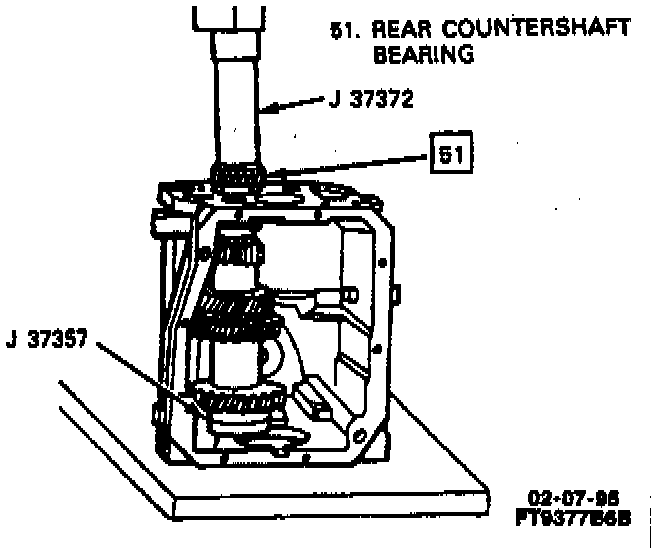 3. Rear countershaft bearing to countershaft using J 37372 and a press.