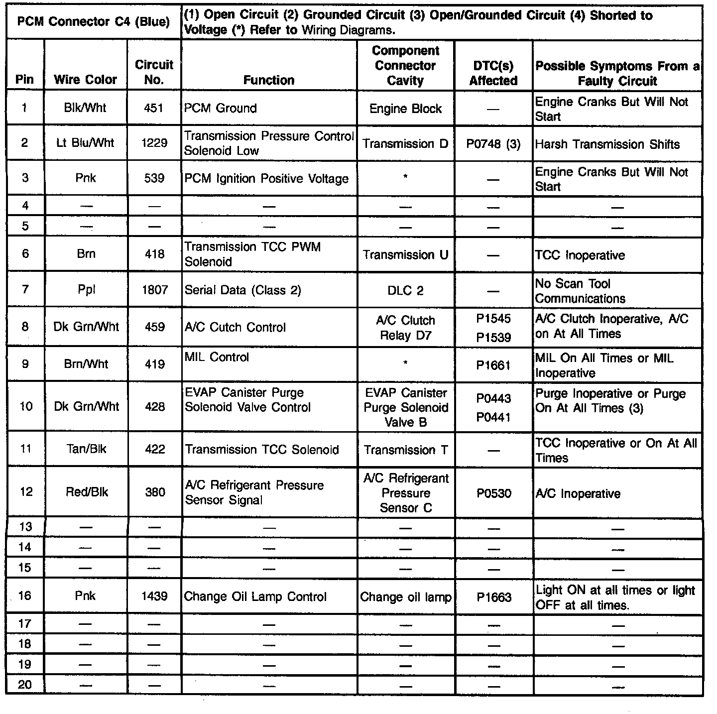 CONNECTOR C4 (BLUE) PINS 1 - 20