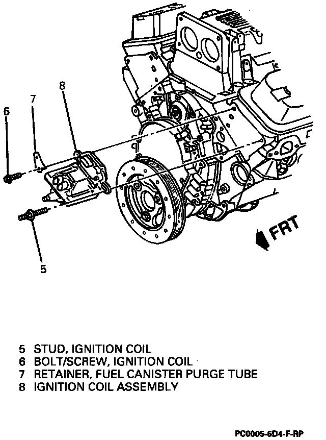 The ignition coil/ignition control module assembly provides spark to the distributor assembly, timed by signals from the PCM. Power (B+) for the ignition coil primary circuit and the ignition control module is supplied by the ignition switch. The PCM combines the camshaft position information supplied by the distributor with other system parameters and calculates the required spark advance and coil dwell. The PCM signals the ignition control module, which turns on the primary current to the ignition coil by grounding the primary circuit, and then turns it off by removing the ground. When the primary current flow stops, high voltage induced in the ignition coil secondary winding becomes the spark voltage for the spark plug. The spark voltage is delivered to the distributor assembly through the coil output (secondary) wire, and then directed to the proper spark plug connector by the distributor rotor.