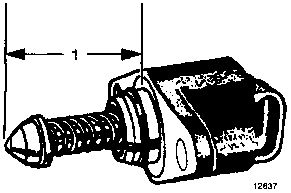 6. Measure the distance between the tip of the AC valve pintle and mounting flange (1). Whenever the distance is greater than 28 mm, use finger pressure in order to slowly retract the pintle. The force required to retract the pintle of a new valve will not cause damage to the valve.