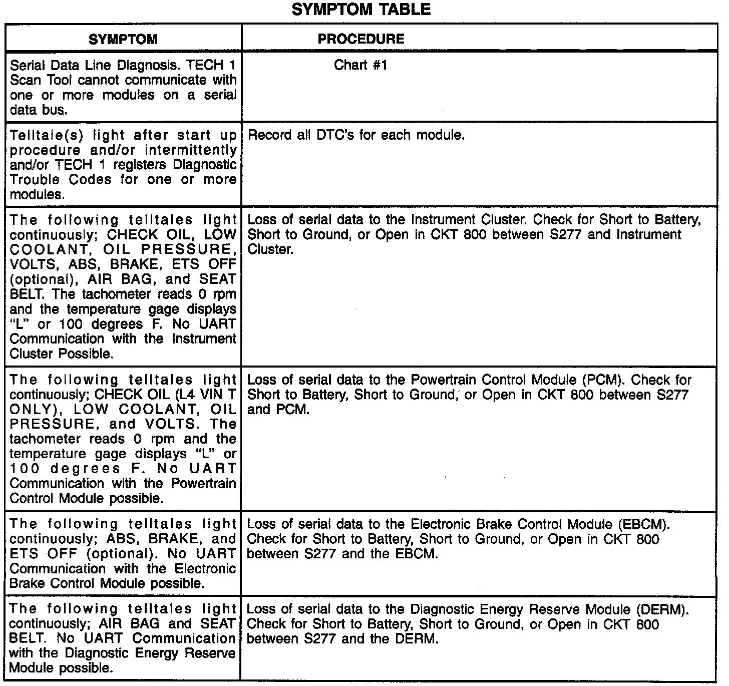 Symptom Table: