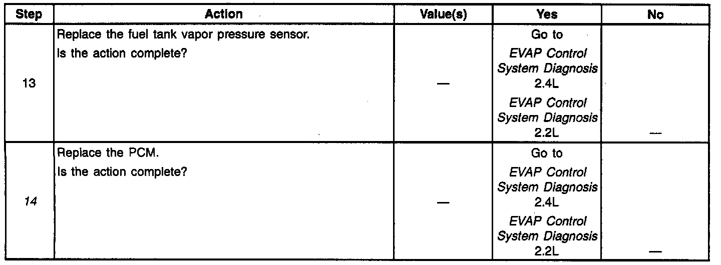 ^ Inspect the wiring harness for damage. If the harness appears to be OK, observe the Fuel Tank Vacuum Pressure display on the scan tool while moving connectors and wiring harnesses related to the sensor. A change in the display will indicate the location of the fault.