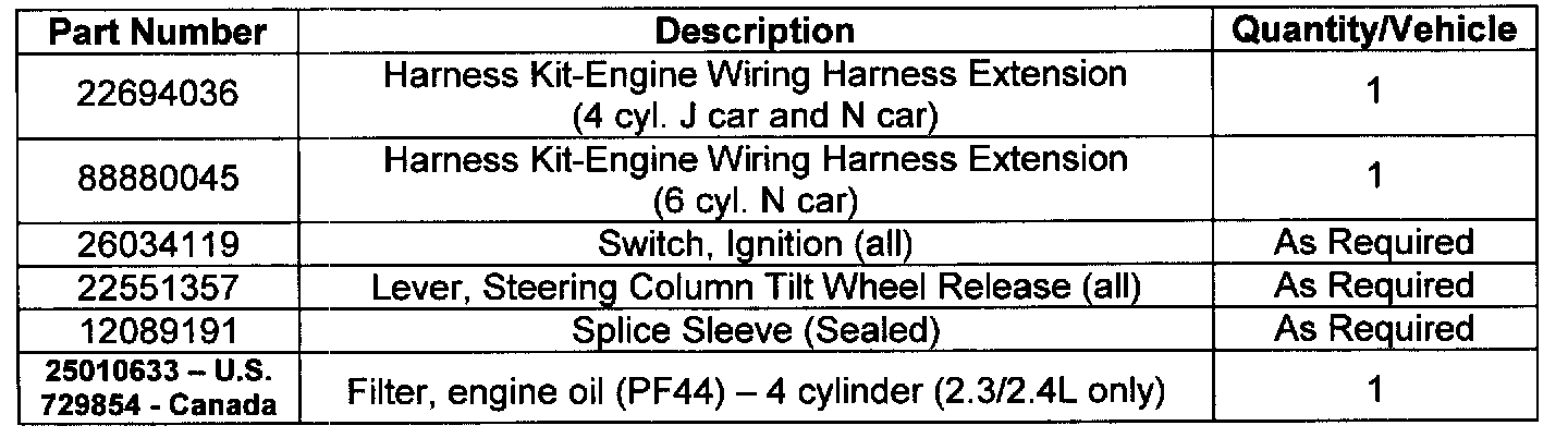 Additional parts, if required, are to be obtained from General Motors Service Parts Operations (GMSPO). Please refer to your "involved vehicles listing" before ordering parts. Normal orders should be placed on a DRO = Daily Replenishment Order. In an emergency situation, parts should be ordered on a CSO = Customer Special Order.