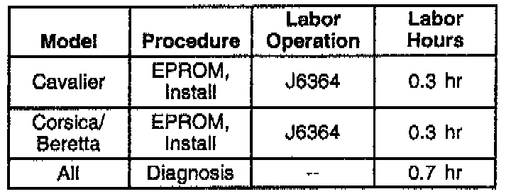 Install a new EPROM to correct the condition from the chart below.