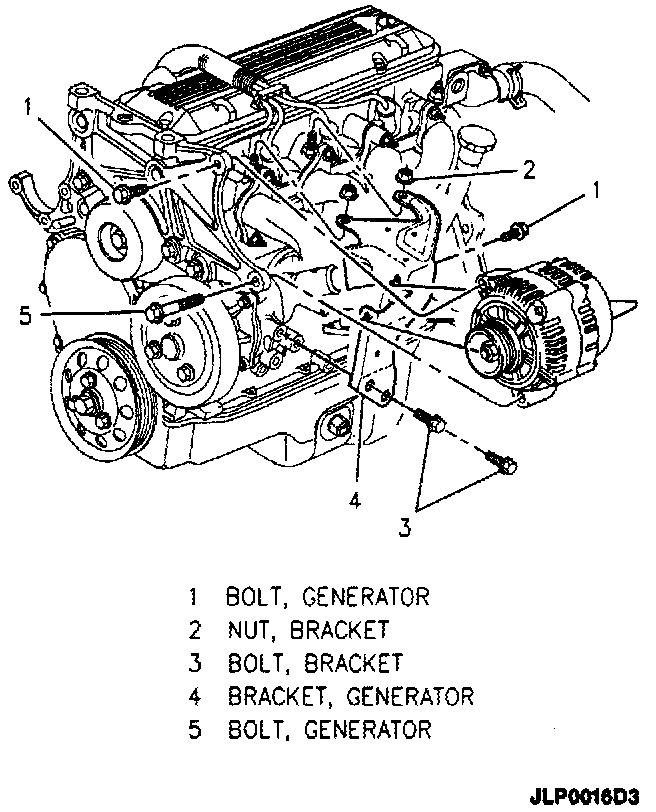 1. Generator to mounting bracket with bolts, washers and nuts.