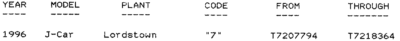 Involved are certain 1996 Chevrolet Cavalier models built within the VIN breakpoints as shown.