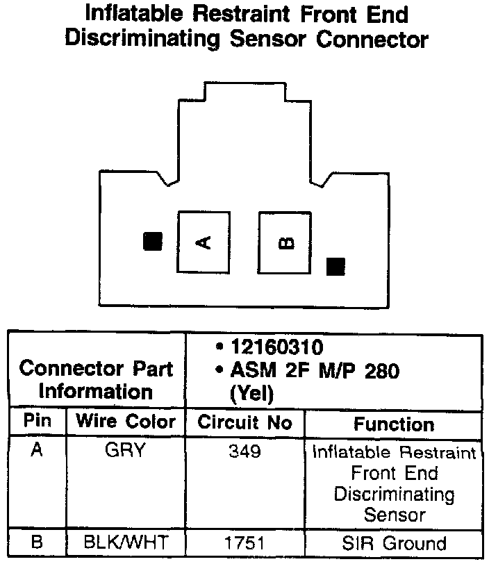 Inflatable Restraint Front End Discriminating Sensor Connector: